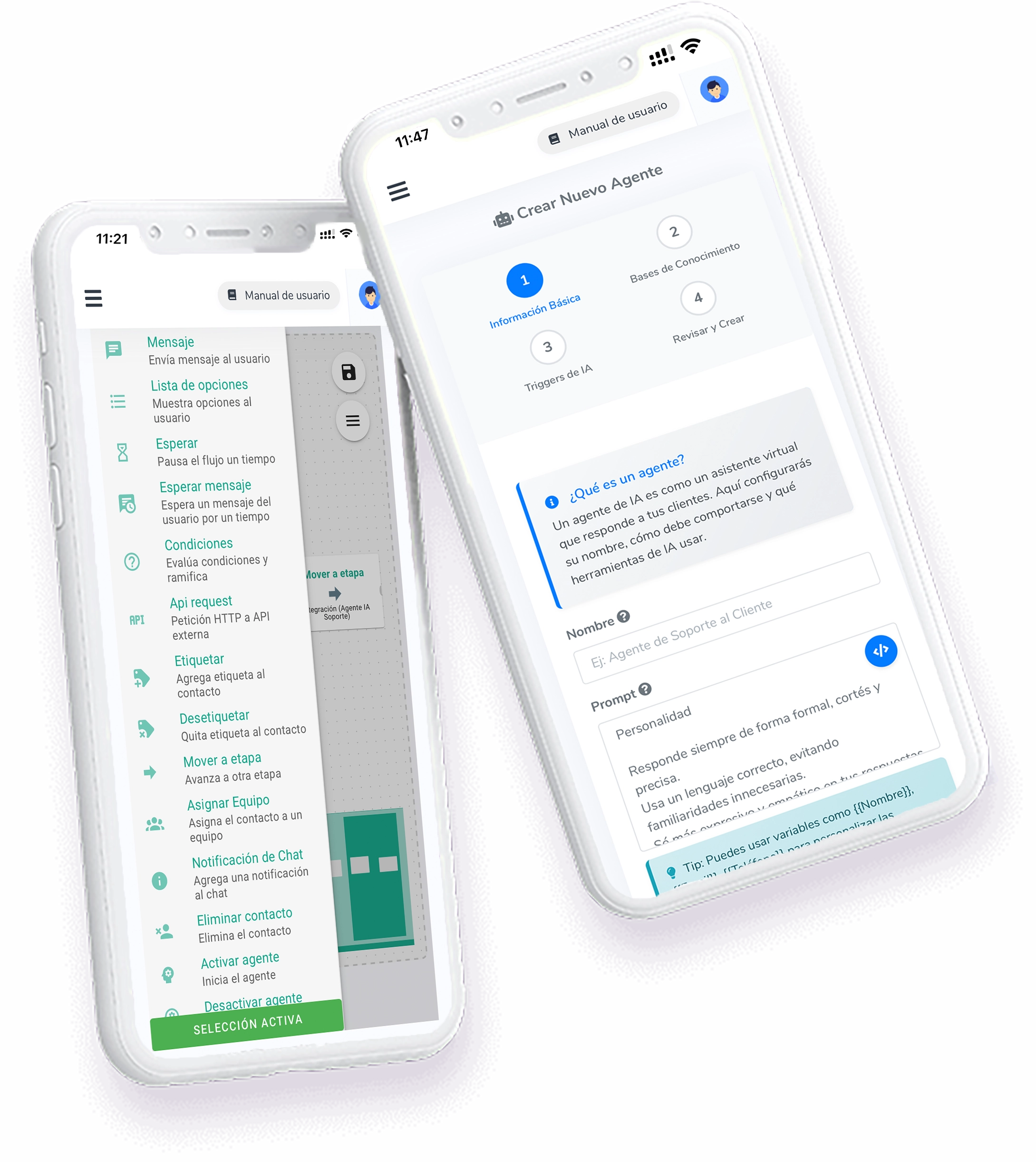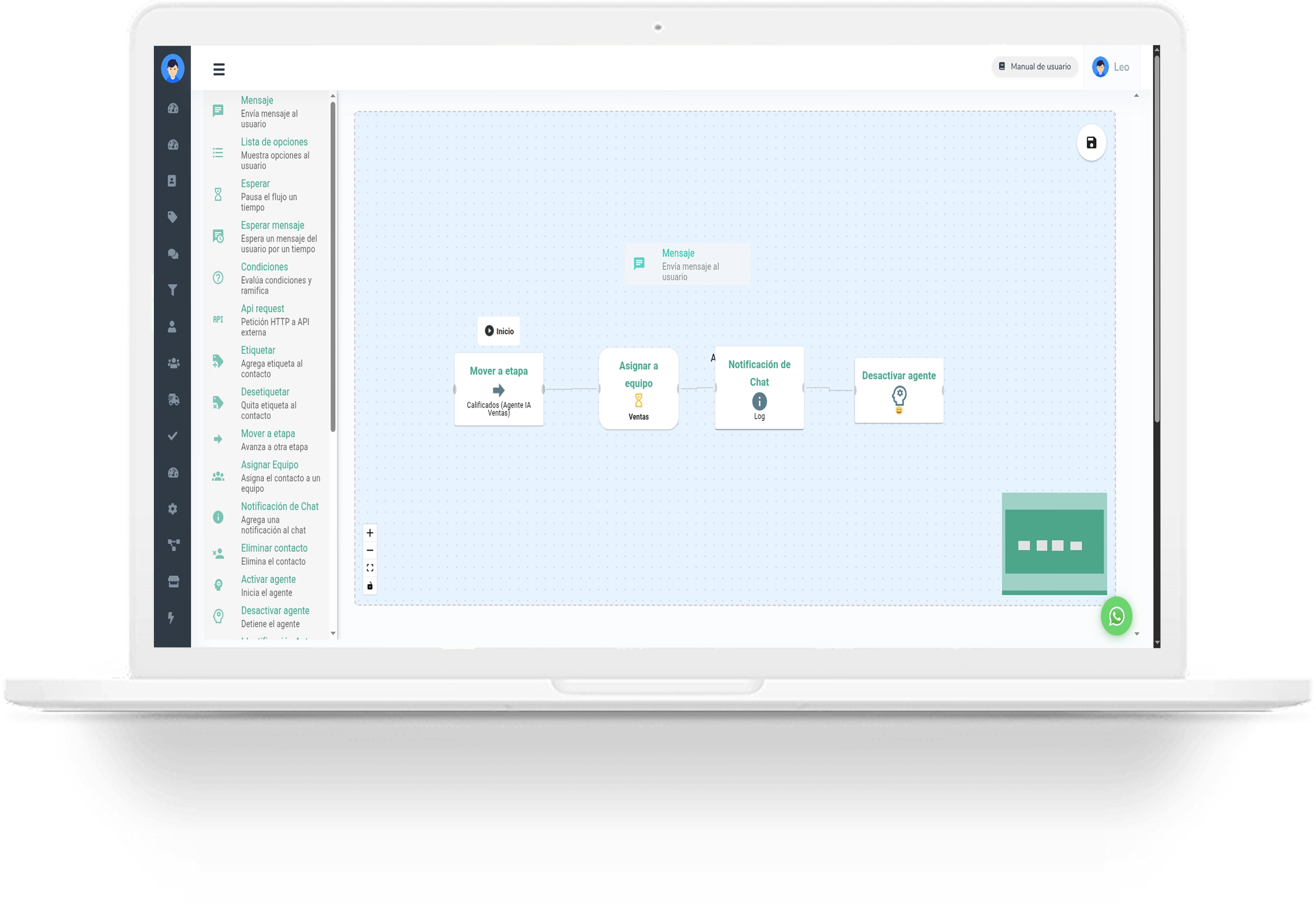Diseña conversaciones automatizadas con lógica condicional, tiempos de espera y respuestas personalizadas. Además, gestiona y responde todos tus chats de WhatsApp directamente desde la aplicación, manteniendo un control total sobre tus conversaciones en un solo lugar.