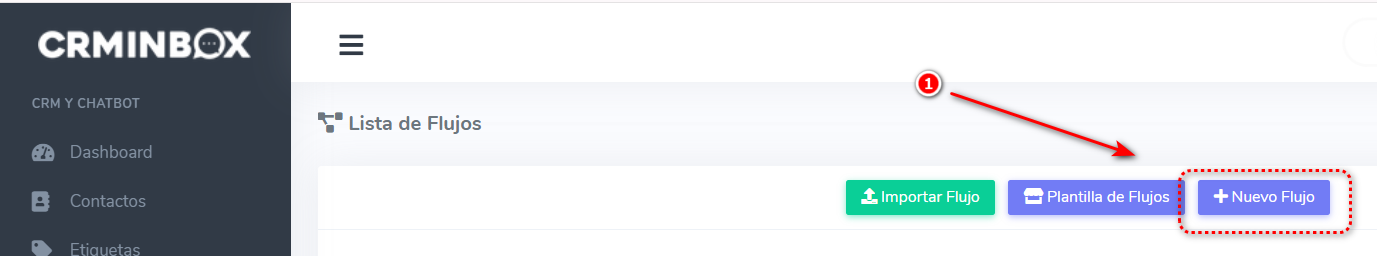 Una vez dentro del módulo de Flujos, localiza y haz clic en el botón "Nuevo Flujo". Este será el primer paso para construir la lógica de tu bot personalizado.